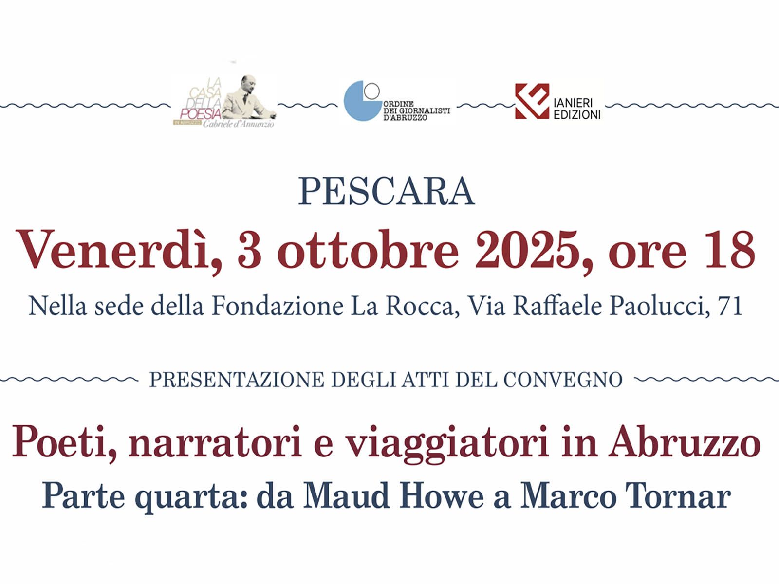 Il convegno Poeti, narratori e viaggiatori – giornalisti in Abruzzo, organizzato dalla Casa della poesia in Abruzzo – Gabriele d’Annunzio e dall’Ordine dei giornalisti d’Abruzzo, di cui si sta organizzando la quinta edizione, si tiene con cadenza annuale e puntualmente vengono pubblicati gli atti da Ianieri edizioni. Quelli del IV convegno, appena editi, con il titolo Scrittori e giornalisti in Abruzzo e nel mondo, da Maud Howe Elliot a Marco Tornar, verranno presentati il prossimo 3 ottobre, alle ore 18,00, presso la Fondazione La Rocca di Pescara (Via Raffaele Paolucci, 71), con il coordinamento di Dante Marianacci, ideatore del progetto e curatore degli atti, e la partecipazione dei relatori che hanno preso parte al convegno, nel corso del quale sono stati presi in considerazione sedici autori che, sommati ai 49 dei precedenti, raggiungono l’invidiabile numero di 65 autori. Qual è sostanzialmente lo scopo di questi convegni?