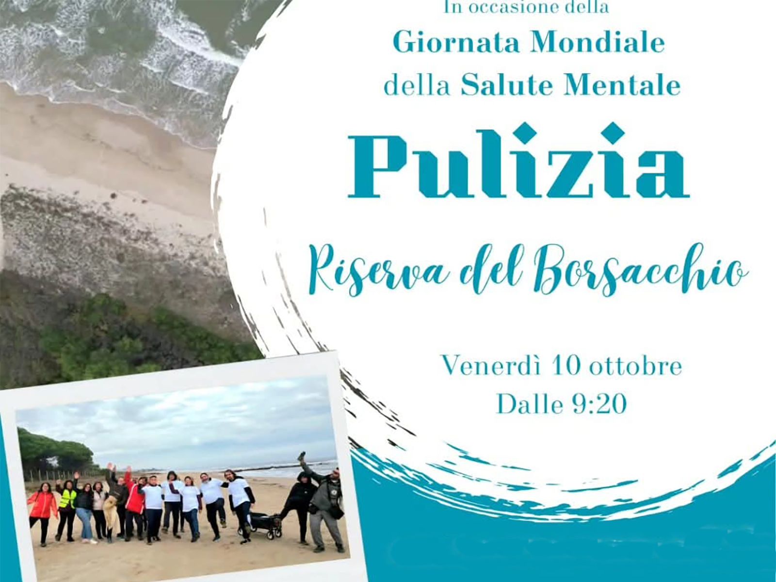 In occasione della Giornata Mondiale della Salute Mentale, venerdì 10 ottobre, si terrà una speciale iniziativa di pulizia della Riserva del Borsacchio, con ritrovo alle ore 9:20 presso il cancello del Villaggio Lido d’Abruzzo, in via Makarska – Roseto degli Abruzzi.
