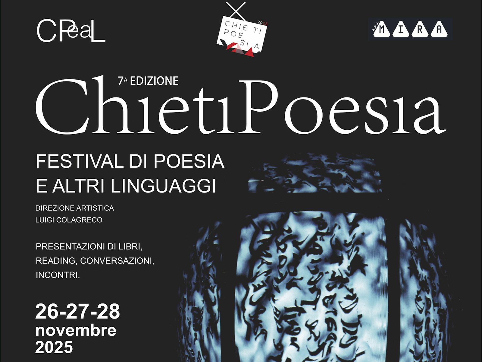 Torna l'atteso appuntamento con il Festival di Poesia e altri Linguaggi: dal 26 al 28 novembre 2025, ChietiPoesia celebra la sua 7° edizione, confermandosi punto di riferimento per gli amanti della poesia e dell'arte contemporanea.