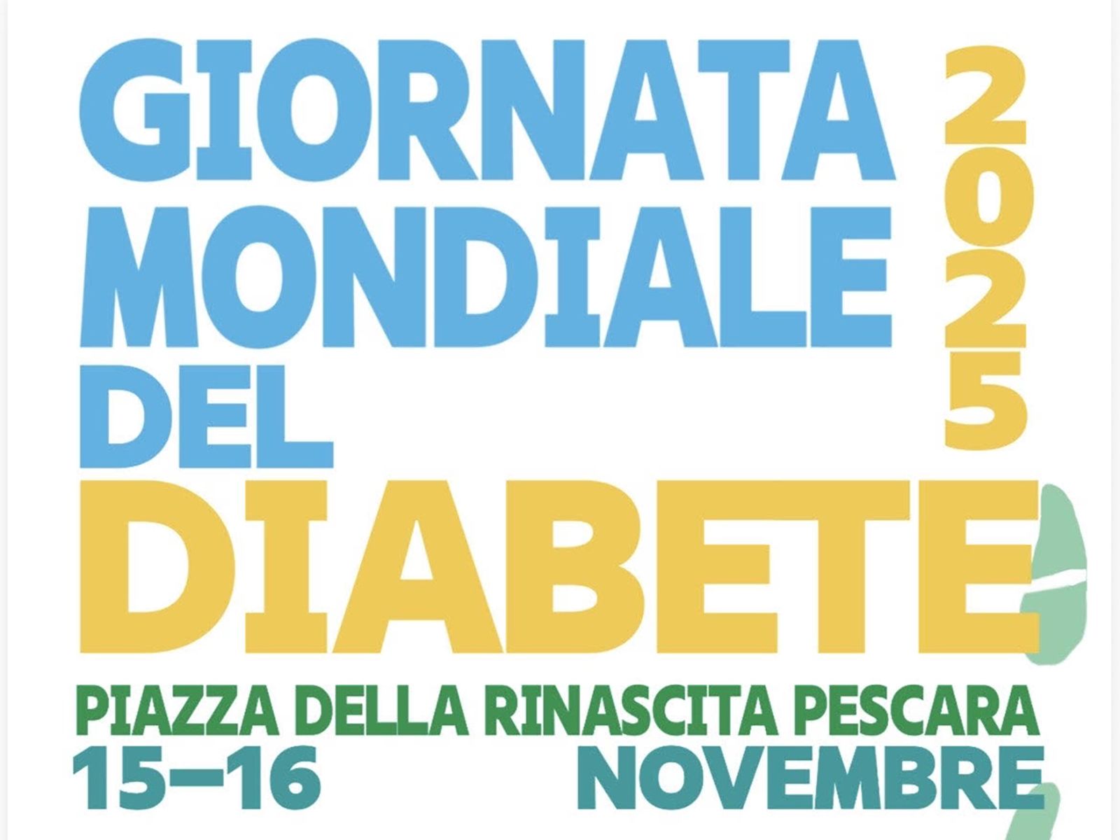 In occasione della Giornata Mondiale del Diabete 2025, l’Associazione A.B.C.D.E.F. – Bambini con Diabete e Famiglie APS, in collaborazione con l’Aniad Abruzzo – Associazione Nazionale Italiana Atleti Diabetici, promuove due giornate di informazione, sensibilizzazione e solidarietà in Piazza della Rinascita (Piazza Salotto) a Pescara, nelle date di sabato 15 e domenica 16 novembre.