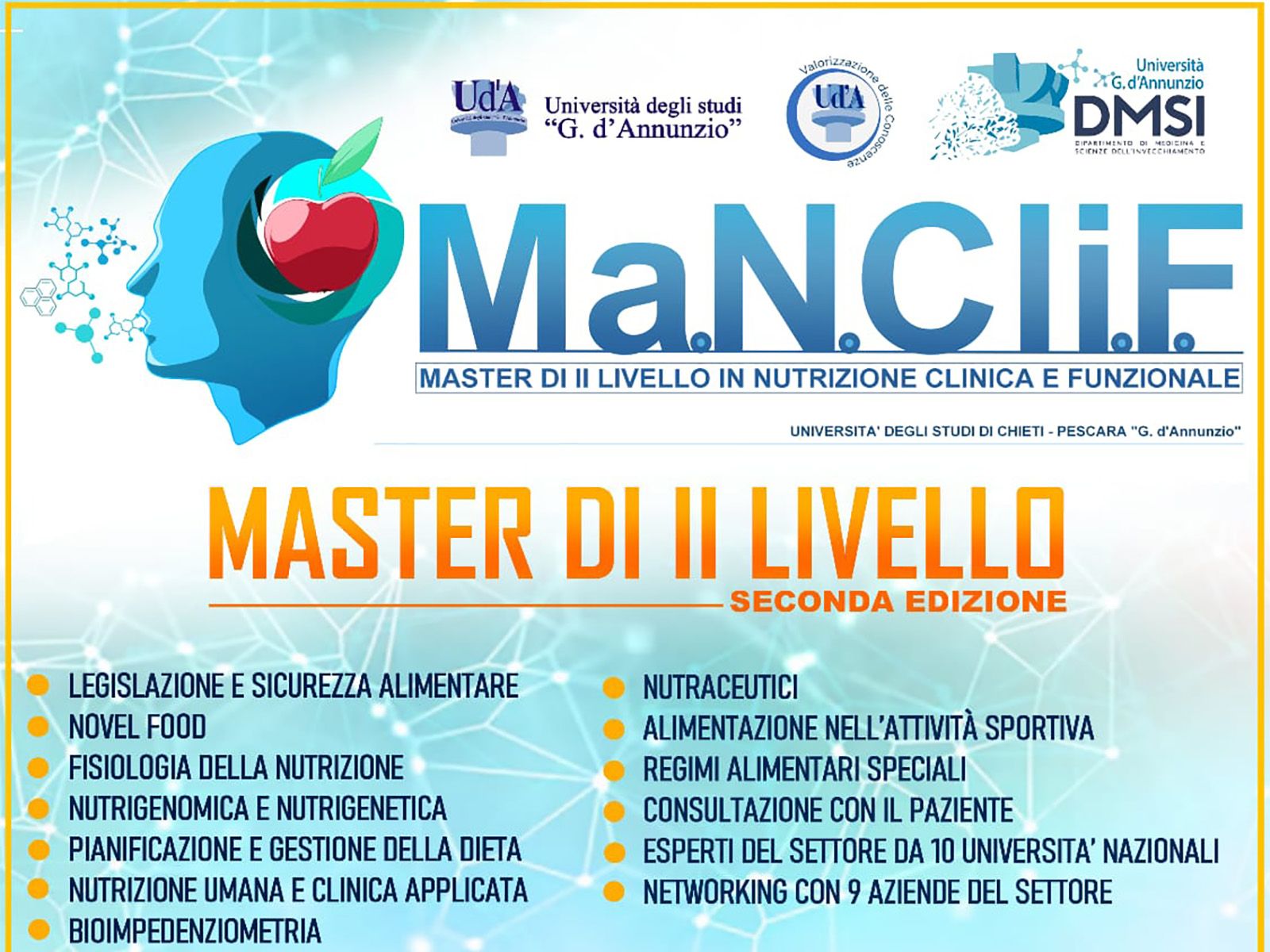 La struttura del Master è flessibile e permette agli studenti di conciliare gli studi con il lavoro, grazie anche all'apprendimento a distanza. Il Master in Nutrizione clinica e funzionale proposto dal Dipartimento di Medicina e Scienze dell’Invecchiamento della “d’Annunzio”, si distingue per l'elevata qualità scientifica, la presenza di docenti esperti nel settore e un approccio innovativo finalizzato a formare professionisti esperti nella promozione della salute e del benessere attraverso la nutrizione. I laureati del Master acquisiranno competenze nella prevenzione e trattamento dei disturbi e patologie correlate alla nutrizione e, indispensabili per opportunità professionali e qualificazione.