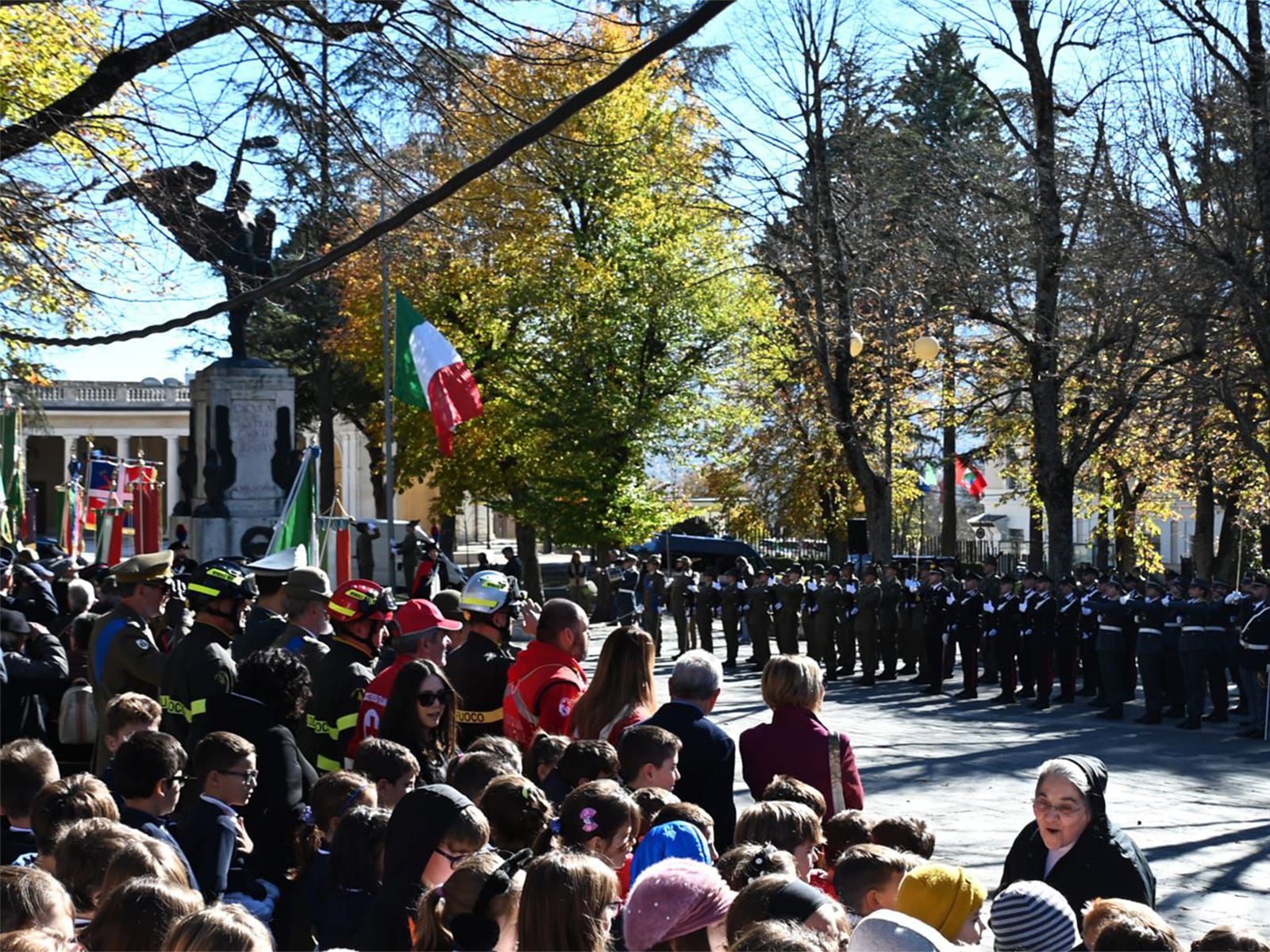 A seguire la cerimonia si è spostata alla Villa Comunale presso il Monumento ai Caduti, dove, alla presenza dei reparti in armi schierati, si sono svolti l’Alzabandiera, gli Onori ai Caduti, la deposizione di una corona e la lettura dei messaggi del Presidente della Repubblica e del Ministro della Difesa. In questa cornice, il Comandante militare Esercito Abruzzo-Molise, Col. Marco Iovinelli, ha donato una bandiera italiana ad una rappresentanza studentesca.