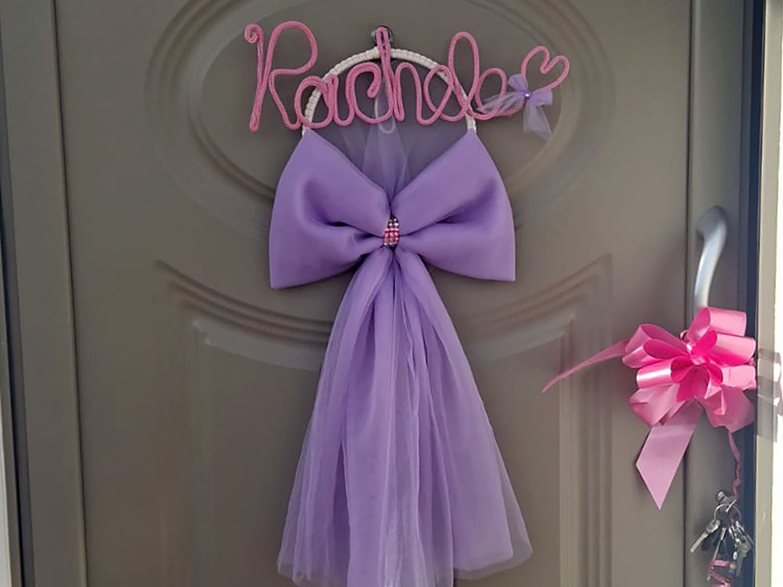 A Cocullo, paese d’origine della tua mamma, fuori dell’abitazione dove vivono i tuoi nonni materni Cinzia e Nicola Mascioli, un bel fiocco rosa spicca sulla scalinata.