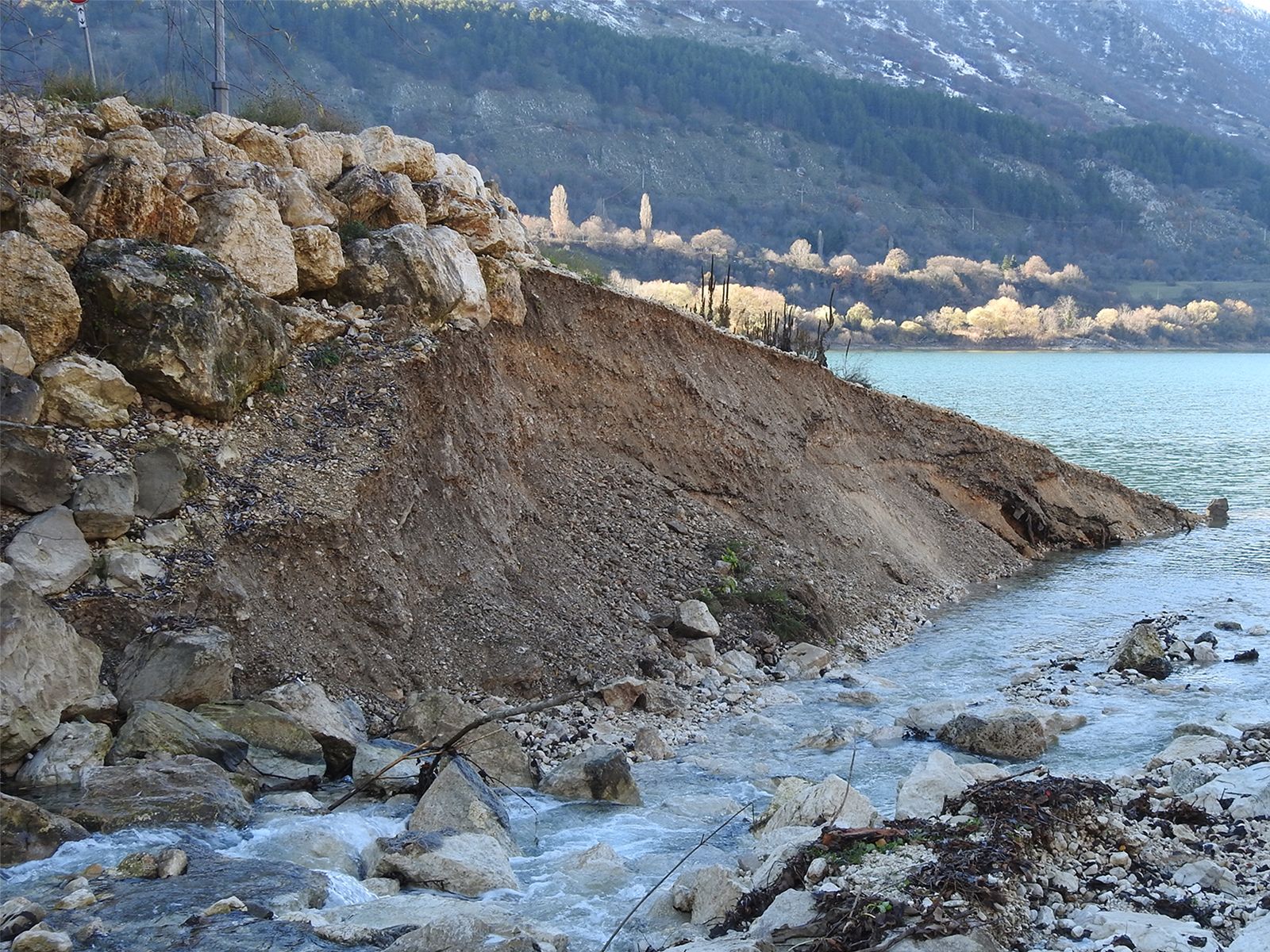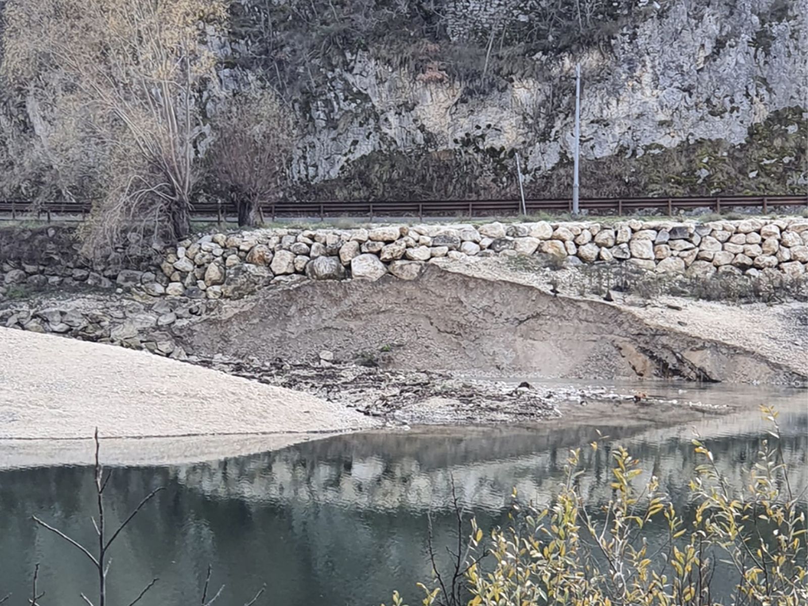 Saranno state le piogge dei giorni scorsi o l’ingrossamento del Fiume Tasso a causare lo smottamento del muro di terra e sabbia alla foce, nel punto in cui si getta al Lago di Scanno. Per fortuna non si registrano danni a persone e a cose. Al di sopra c’è la strada provinciale che non è stata minimamente toccata dall’incidente franoso.
