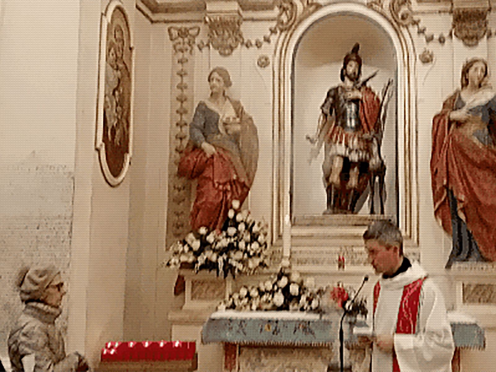 Dopo la celebrazione della messa nella chiesa madre, i fedeli si sono raccolti nella chiesa di Sant’Eustachio, dove la sua statua a sinistra e quella di Santa Barbara a destra, fiancheggiano la nicchia che custodisce il santo Patrono. Il parroco ha guidato momenti di preghiera con la partecipazione attiva di numerosi fedeli nonostante il rigore delle temperature in questo periodo, essendo la chiesa non riscaldata.