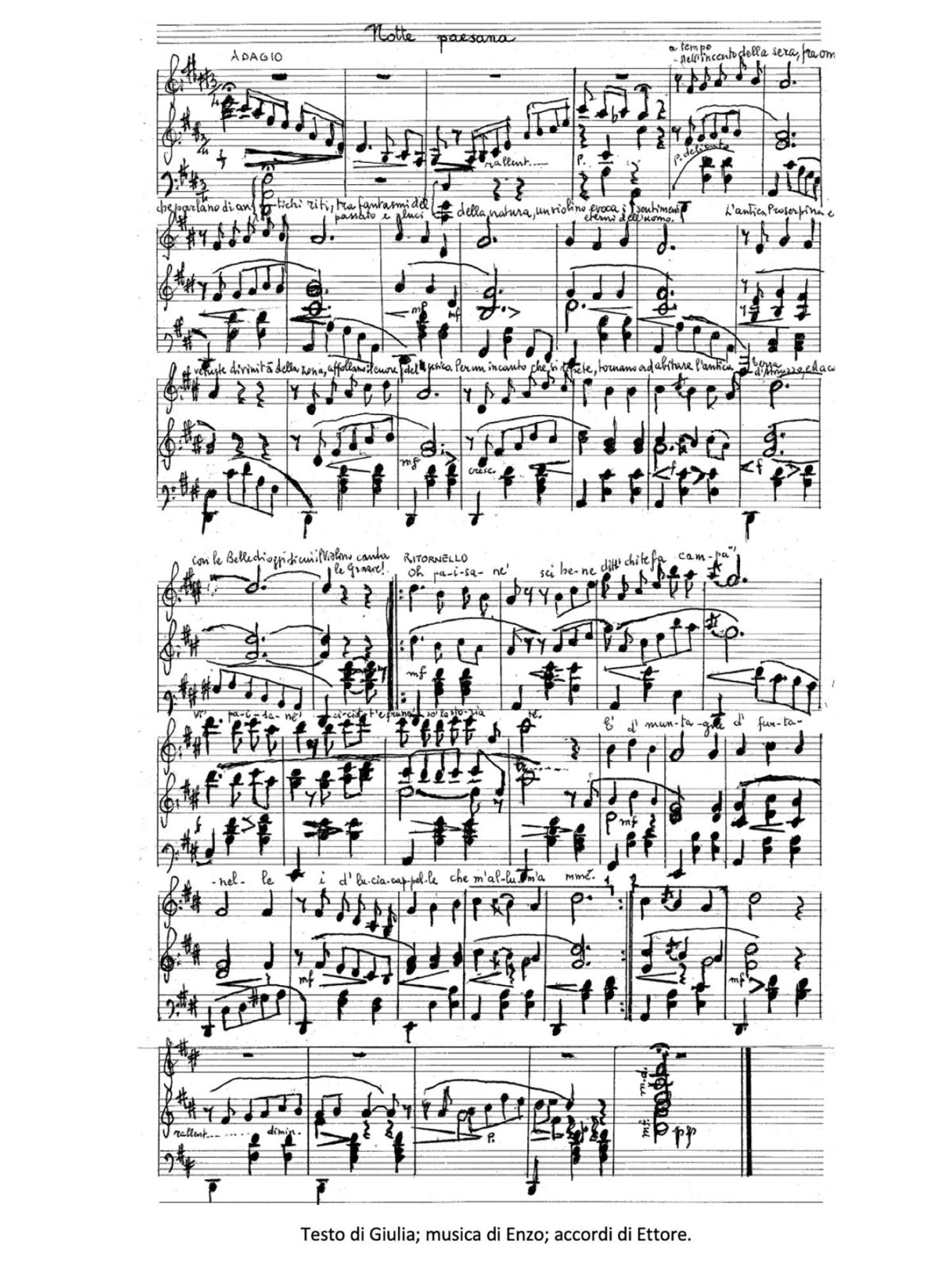 Una mattina si avvicinò a riva per ammirare la sfilata delle paranze che prendevano il largo. Ad un certo punto dietro uno scoglio apparve non una sirena, ma una vecchietta ricurva intenta a raccogliere frutti di mare per arricchire la sua bancarella prima che tornassero i pescatori. L’età inoltrata, le condizioni fisiche e la veste dimessa lo colpirono e nel salutarla Enzo propose alla nonnina di aiutarla. Lei accettò volentieri e quella “cerimonia” della raccolta dei molluschi si ripeté più volte.