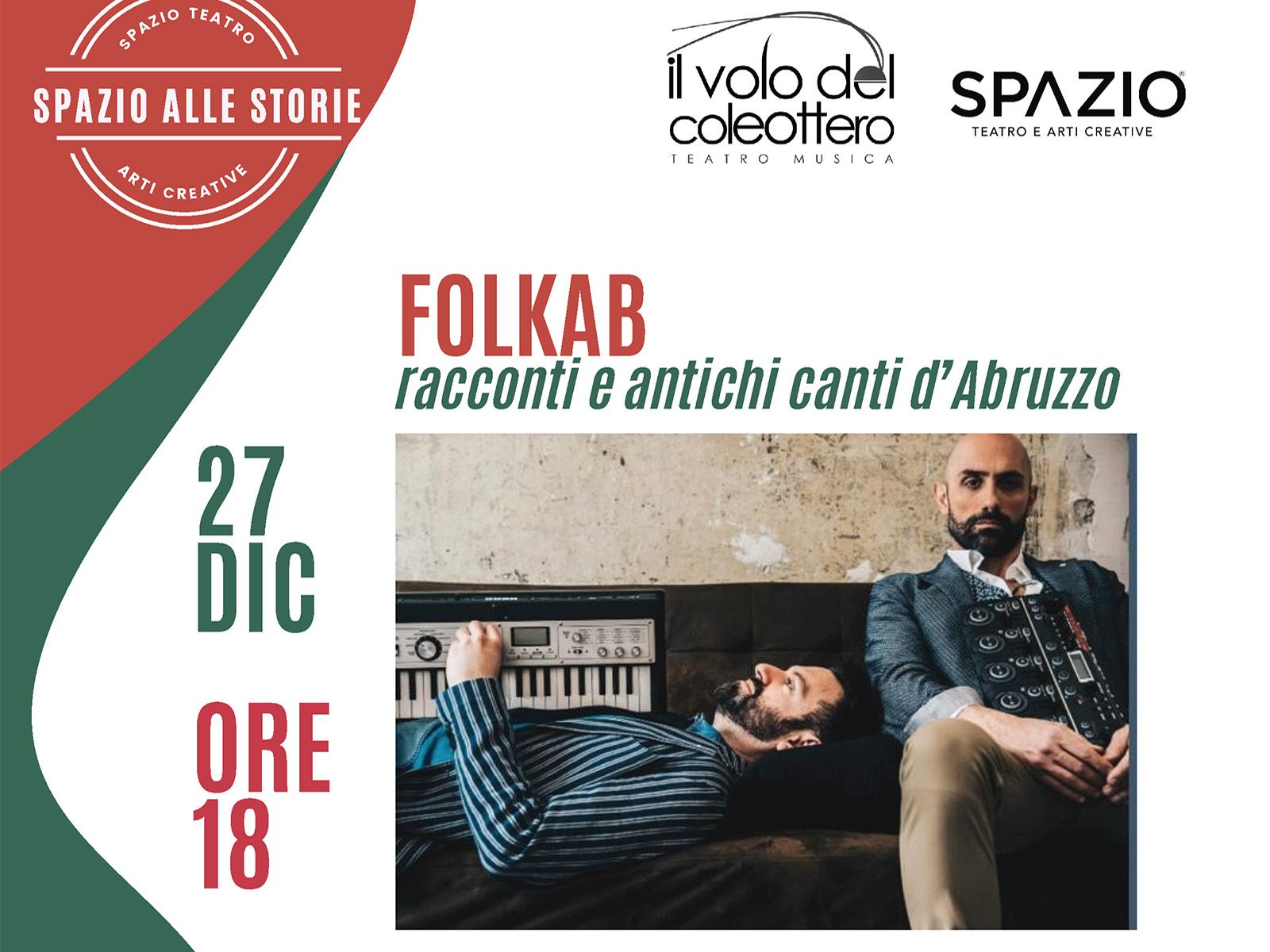 Sabato 27 dicembre alle 18.00 va in scena l’ultimo appuntamento della rassegna natalizia “Spazio alle storie” con lo spettacolo FOLKAB.