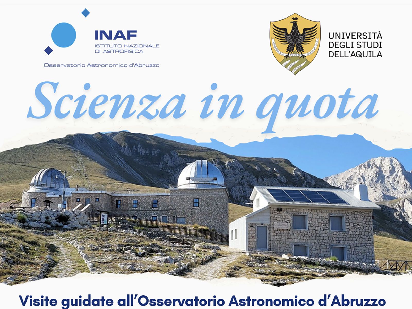 Il programma prevede quattro mattinate di apertura straordinaria, tra luglio e agosto, durante le quali sarà possibile esplorare la Stazione osservativa di Campo Imperatore, il più alto osservatorio professionale d’Italia, e il Giardino Alpino, punto di riferimento unico nell’Appennino per lo studio e la conservazione delle specie vegetali d’alta quota.