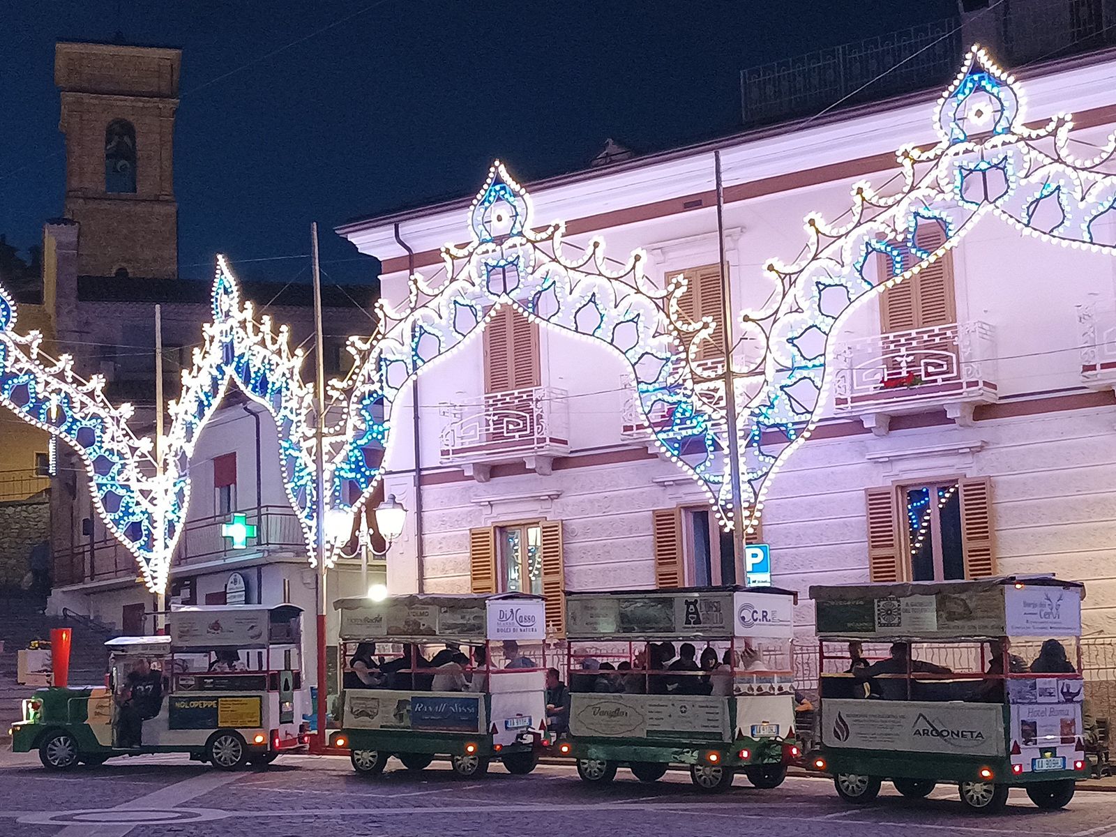 I passeggeri intanto gustavano l’aperitivo e si godevano estasiati il tramonto, l’ora, per dirla con l’Alighieri, “che intenerisce il core”. Il trenino procedeva a passo d’uomo lungo la circumlacuale per poi tornare in Piazza Celestino Lupi.