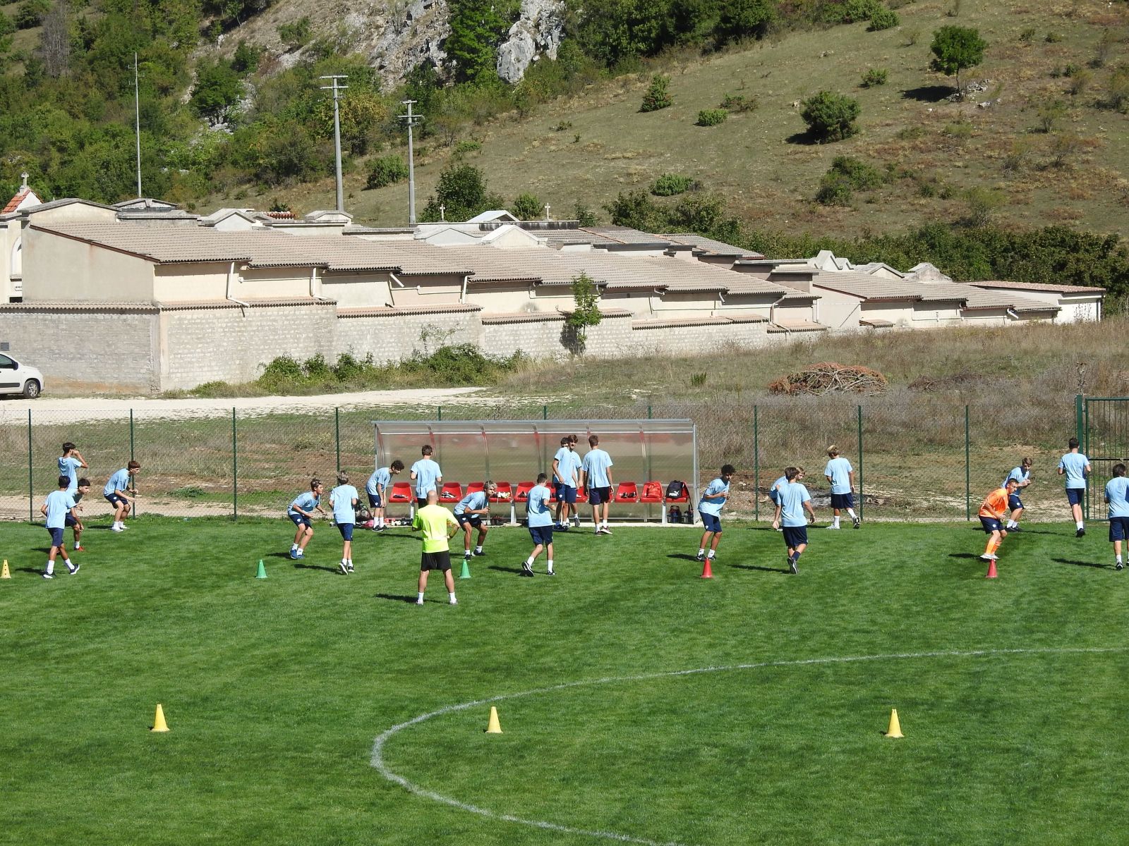 Ieri siamo andati al nuovo campo sportivo per seguire come giornale gli allievi della Soc. Sportiva Grifo di Roma, presente a Villalago per la preparazione tecnica in un paese di montagna. I ragazzi a gruppi seguivano il piano di lavoro nel terreno di gioco, inaugurato lunedì scorso, più verde del solito sotto i raggi del sole. La brezza di valle smorzava il calore, rendendo l’aria più mite.