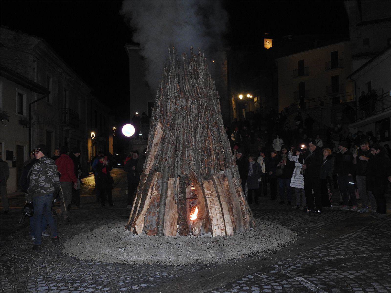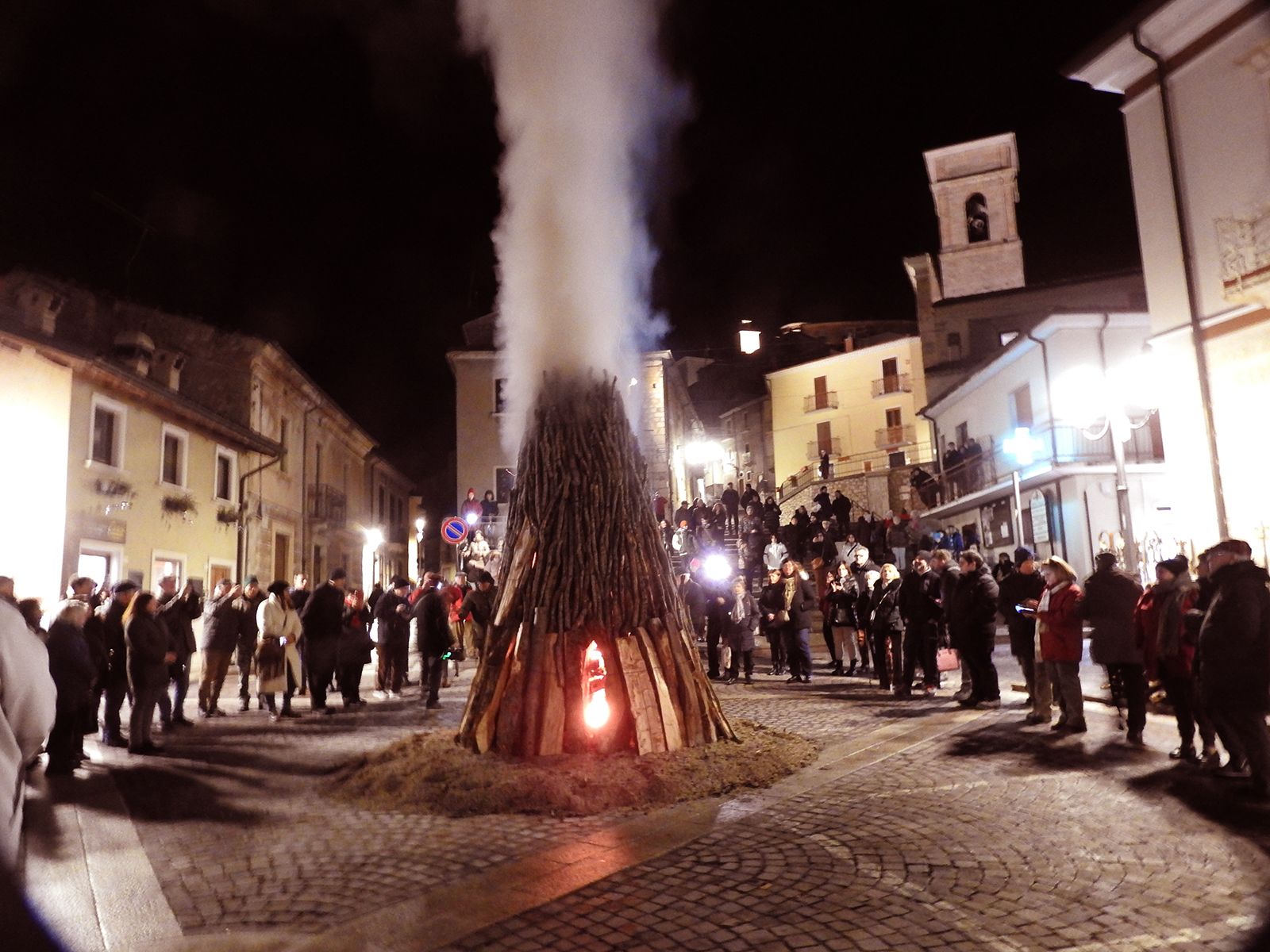 Dopo i tentennamenti iniziali, le fiamme si sono innalzate e hanno circondato l’enorme catasta di legna. Nonostante il freddo, c’è stata una buona partecipazione di persone, arrivate anche dalla vicina Scanno.