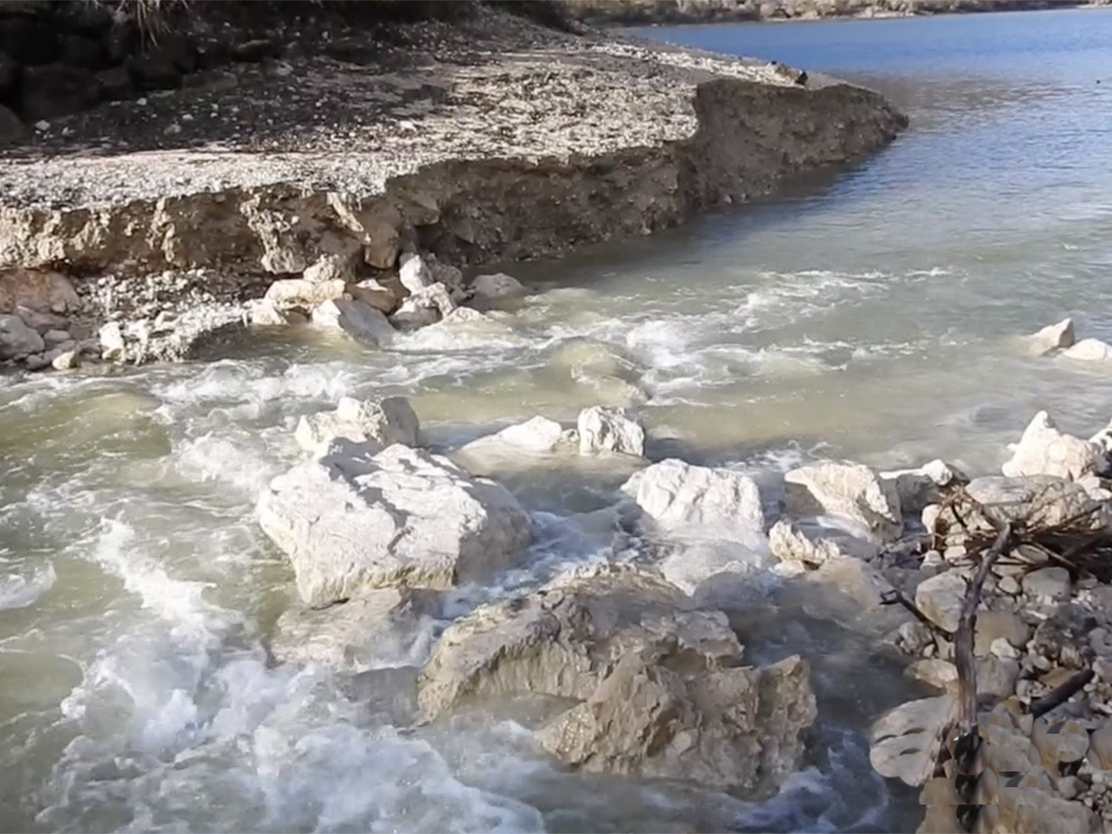 Il Tasso in tutti questi anni ha eroso alla foce il suo letto, facendosi strada tra i detriti, come le foto dimostrano, con la conseguente caduta dei massi arginali, che erano a livello delle acque. A soffrirne è anche il lago.