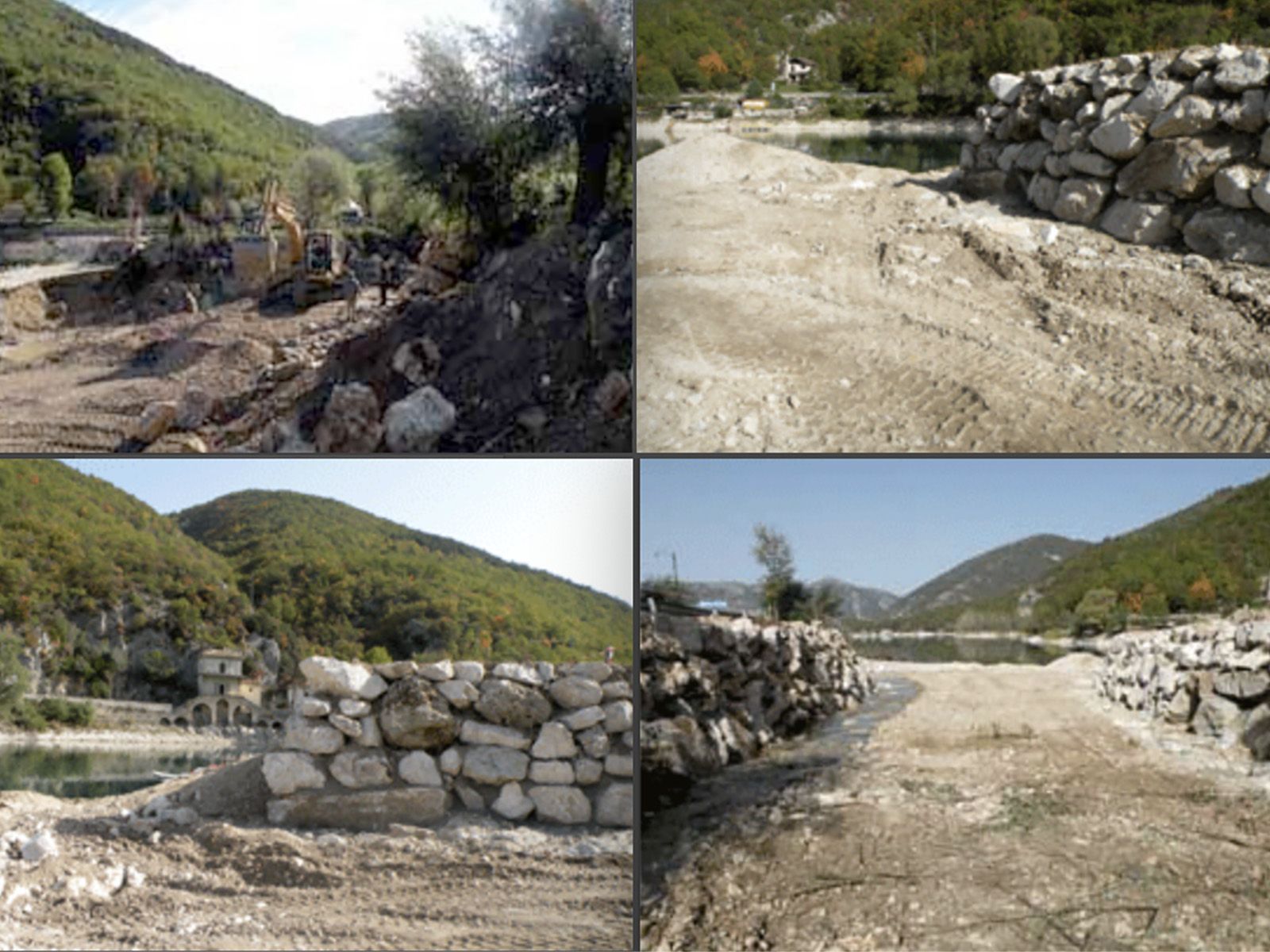 Nell’Ottobre del 2008 vennero effettuati lavori di drenaggio e il consolidamento delle rive, inconsistenti dopo la piena di primavera, che avevano causato crepe alla banchina della strada provinciale. Le varie piene stagionali avevano riversato sul lago un'enorme quantità di detriti, che andavano rimossi. L'occasione propizia arrivò con il calo del livello delle acque, che permise ai mezzi meccanici di poter eseguire i lavori di drenaggio e di poter posizionare i massi per le scogliere laterali. Le quattro foto, riunite in una, documentano i lavori.
