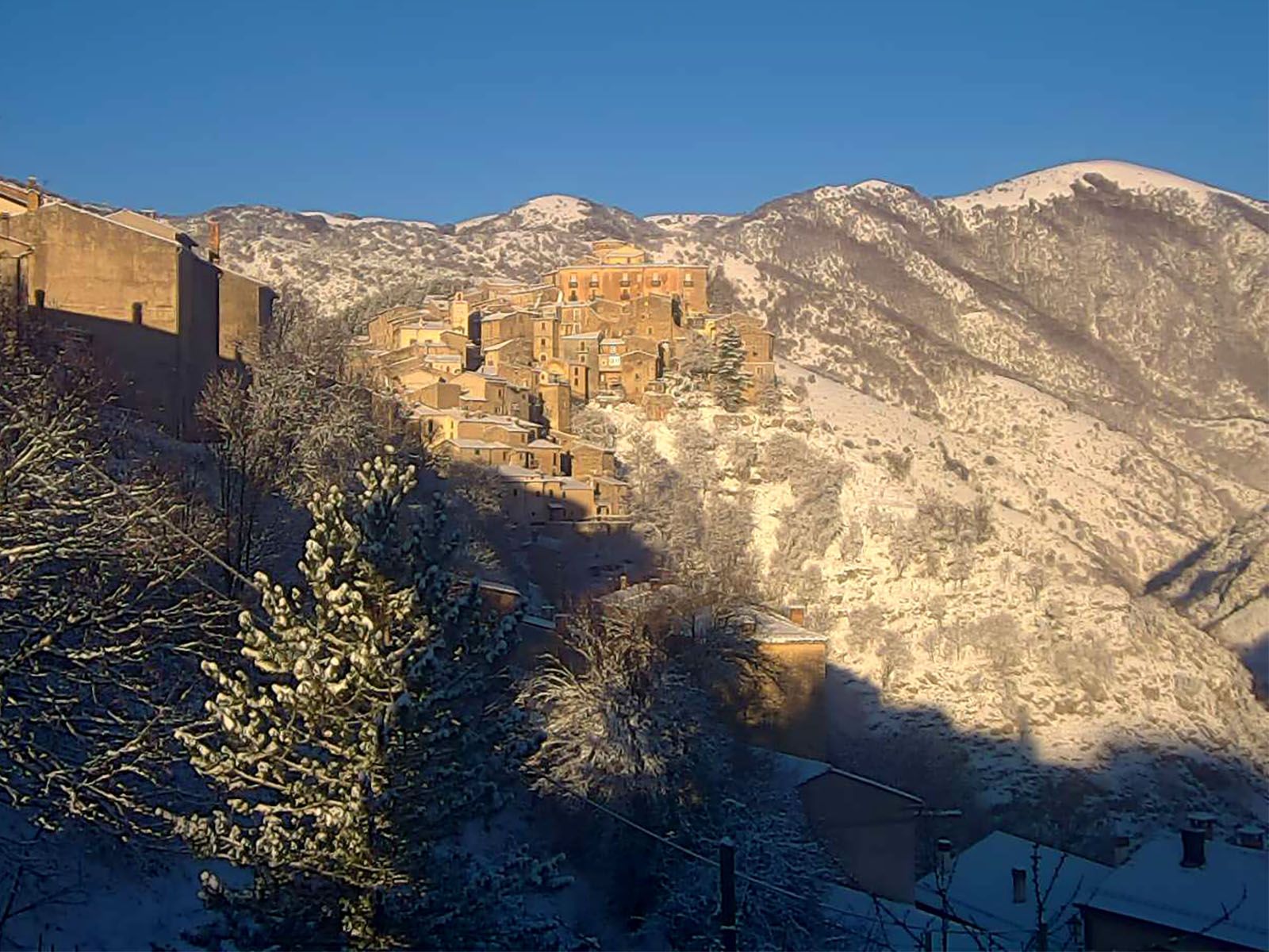 È scesa dai monti la neve a Villalago e a Scanno