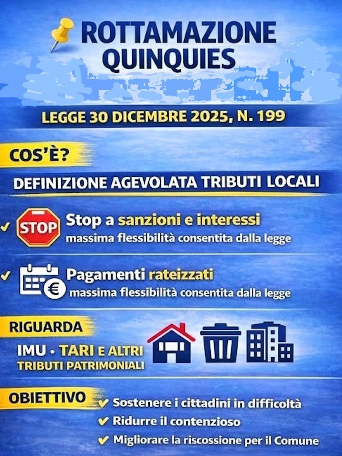 Con la deliberazione n. 27 del 12 febbraio scorso, la Giunta Comunale di Pratola Peligna ha approvato l’”Atto di indirizzo agli uffici comunali per la predisposizione di una proposta di delibera da sottoporre al consiglio comunale sulla adesione alla definizione agevolata dei tributi locali ai sensi della legge di bilancio 2026 (legge n. 199/2025)”.