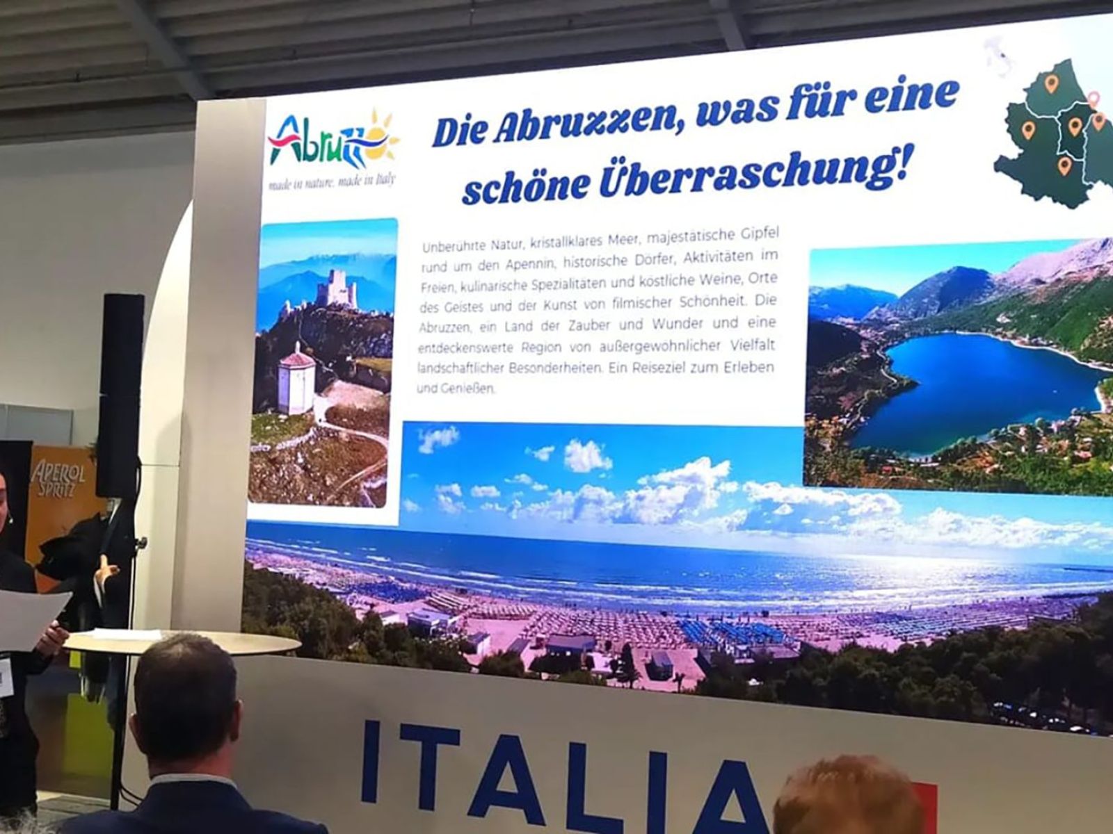 Alla fiera di Monaco, che si chiude domenica 22 febbraio, sono presenti otto tra operatori turistici, consorzi e progetti strategici che rappresentano in modo coordinato le principali aree di prodotto regionale: DMC Costa dei trabocchi GAL Costa dei trabocchi, Abruzzo Camping, T.O. Pallenium – Ferrovia dei Parchi Transiberiana, Cammino Grande di Celestino, Wolftour, Progetto “Ciclovie della Transumanza” – Partenariato pubblico-privato Comune di Cugnoli / CARSA srl, Hotel San Giorgio e Freedom to Live.