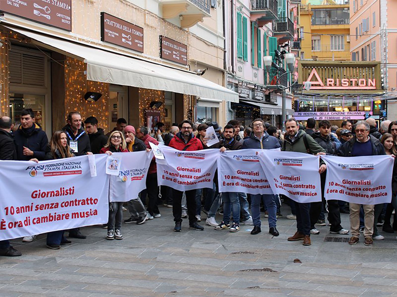 Un CoCoCo guadagna circa 11.000 euro all'anno l'ordine, una partita Iva 17.000 euro all'anno. La qualità dell'informazione così non ci può essere, ma senza qualità l'informazione muore. Senza qualità l'informazione è destinata a diventare il regno del Copia e Incolla e questo non lo vogliamo». Lo ha detto Alessandra Costante, segretaria generale della Fnsi che porta a Sanremo, nel giorno dell’apertura del Festival il 24 febbraio 2026, la mobilitazione per il rinnovo del contratto di lavoro scaduto il 1 aprile del 2016 con un flash mob davanti all'Ariston. I giornalisti hanno esposto degli striscioni con la scritta: "Giornalisti senza contratto da 10 anni.