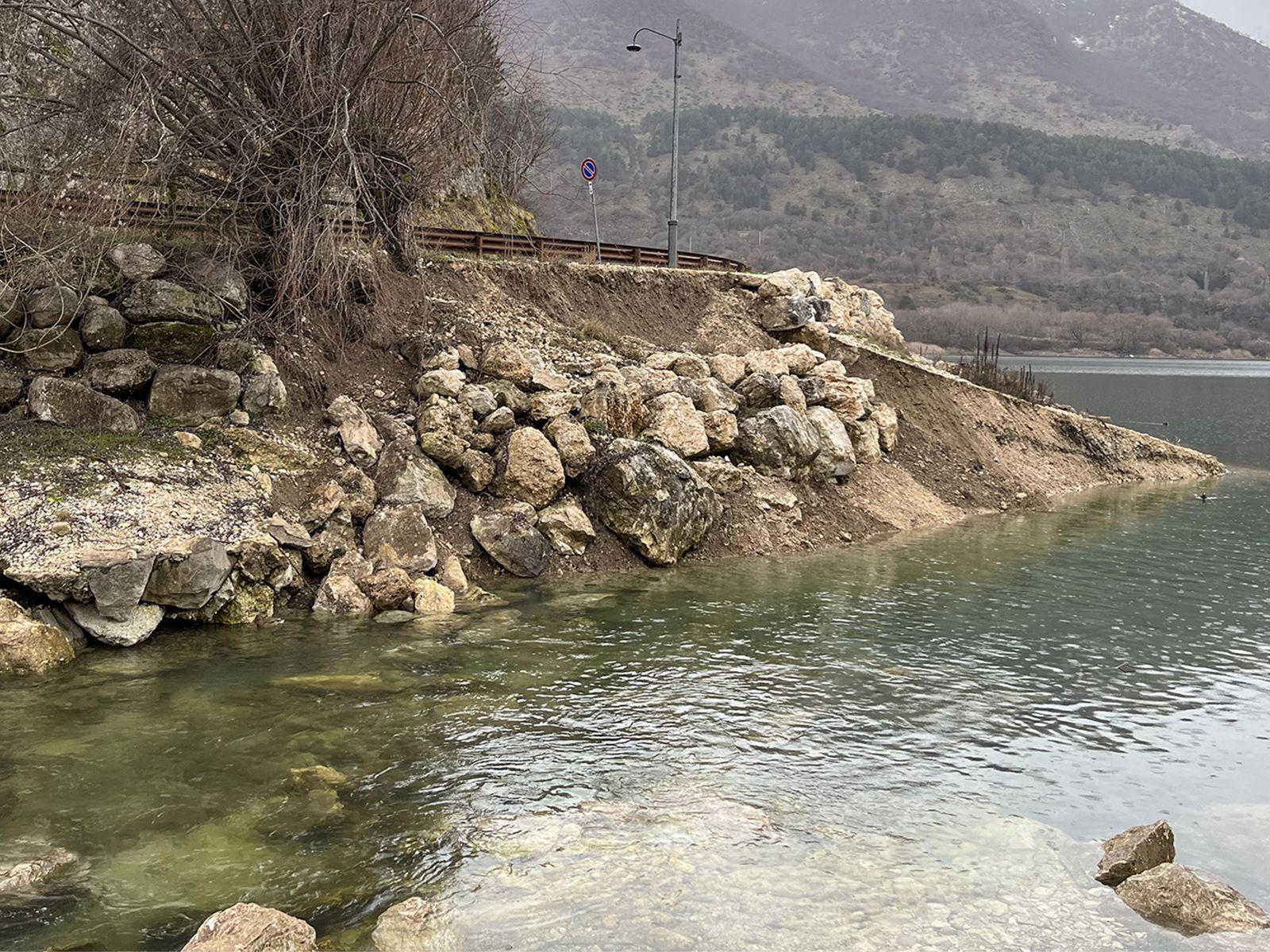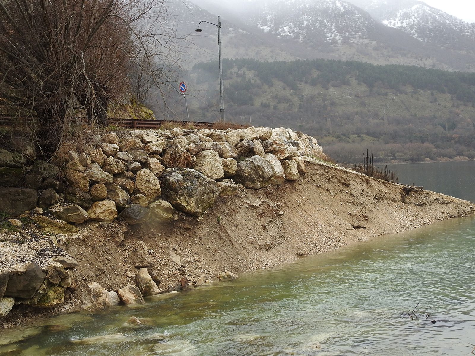 Ricordiamo che nell’Ottobre del 2008 vennero effettuati lavori di drenaggio e il consolidamento delle rive, inconsistenti dopo la piena di primavera, che avevano causato crepe alla banchina della strada provinciale. Le varie piene stagionali avevano riversato sul lago un'enorme quantità di detriti, che andavano rimossi. L'occasione propizia arrivò con il calo del livello delle acque, che permise ai mezzi meccanici di poter eseguire i lavori di drenaggio e di poter posizionare i massi per le scogliere laterali.