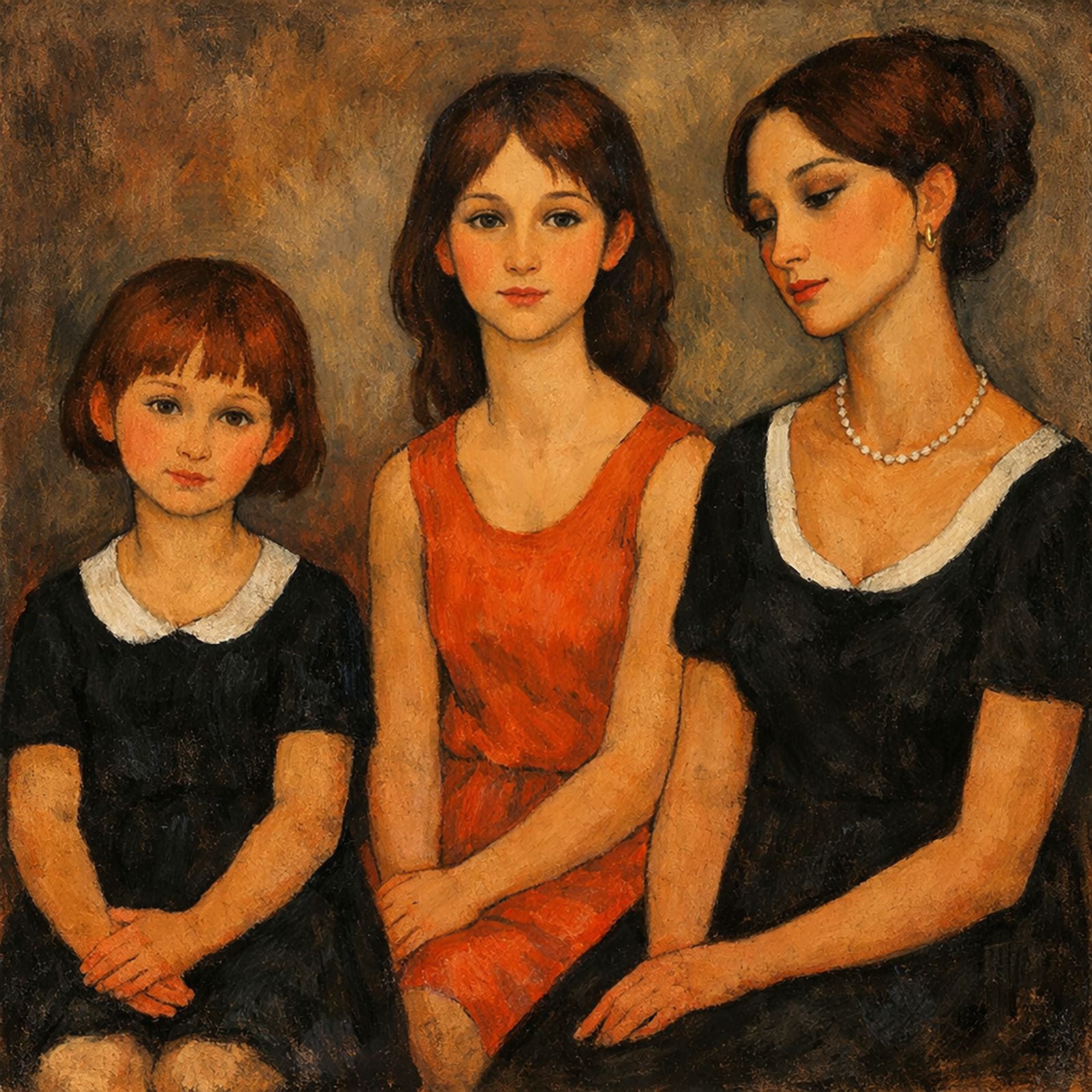 Per mano strette le due bambine alle sue.