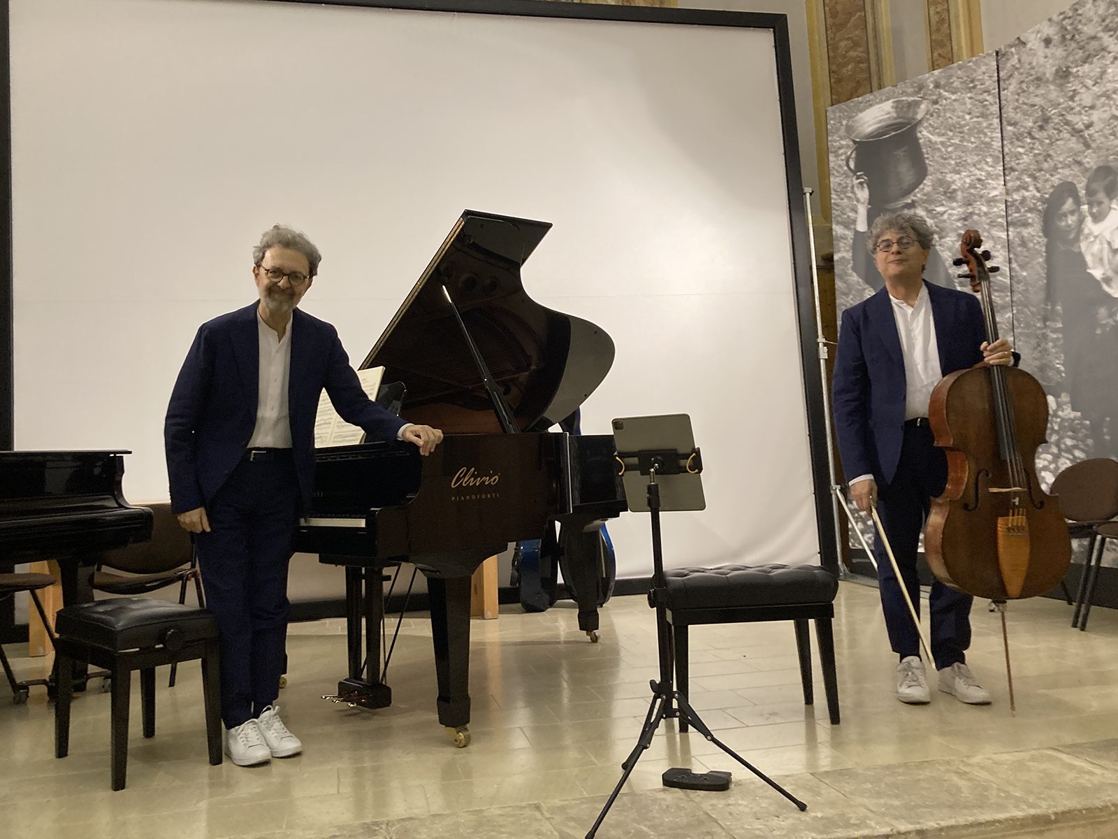 Il duo ha eseguito i seguenti brani musicali: L. van Beethoven, Romanza in fa maggiore, op. 50; L. van Beethoven, Sonata in sol minore op. 5 n.2; R. Molinelli, Presenze Riflesse, Omaggio a Schnittke; C. Saint-Saens, Le cygne, da il Carnevale degli animali; C. Saint-Saens, Allegro appassionato in si min. op.43.