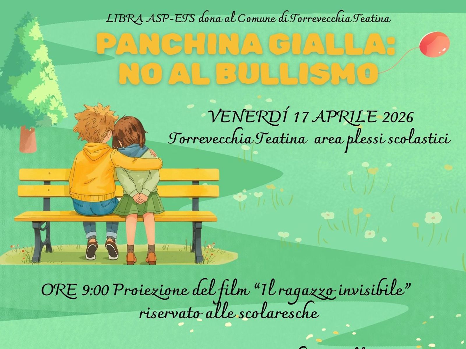 Venerdì 17 aprile dalle ore 9:00 Torrevecchia Teatina insieme alle scuole della cittadina teatina vivrà un momento di grande impatto sociale insieme all’APS-ETS LIBRA: la consegna all’amministrazione comunale della panchina gialla contro il bullismo e il cyberbullismo.