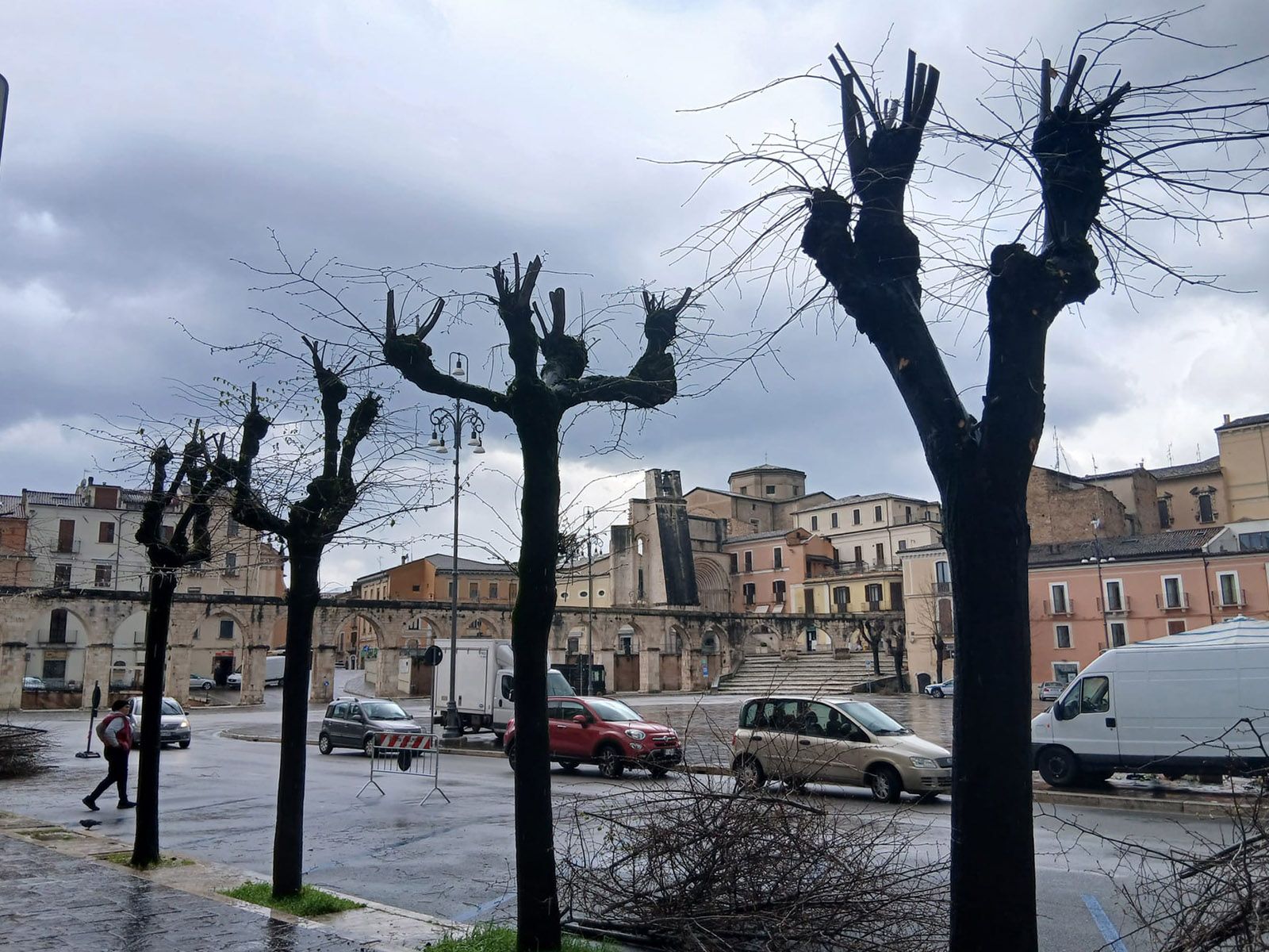 Certo, comprendiamo che Pasqua è arrivata e che i residenti della piazza hanno il sacrosanto diritto di vedere senza ostacoli di sorta lo spettacolo della “Madonna che scappa”, ma anziché tagliare tutti i rami e far restare solo degli spuntoni, non si potevano lasciare i rami ad una certa altezza in modo che gli alberi potessero riformare in tempi brevi la propria chioma?